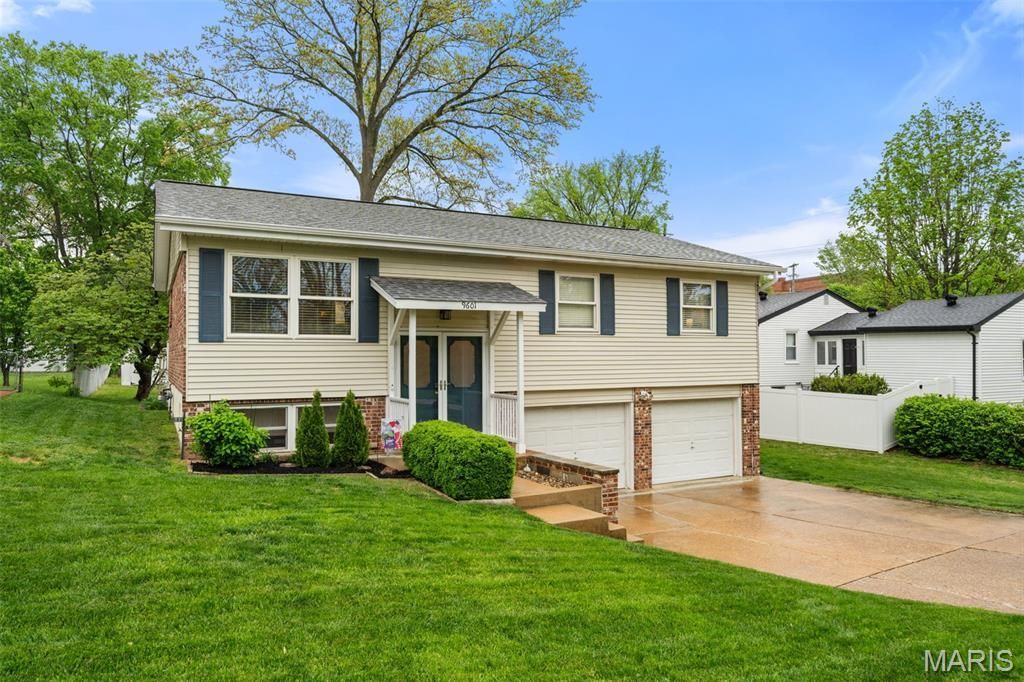 This ain't our first rodeo in Crestwood... but 9601 Gallop Lane might be our favorite ride yet. Sittin' pretty in the Lindbergh School District, this 4 bed, 3 bath split-level from 1977 is off to a strong start and frankly... not horsin' around. Step inside and you'll find gleaming hardwood stairs, tons of natural light and a main living room that is bright, open + ready for whatever setup you've been saving on Pinterest. Big windows, easy flow + a space that just *works* without overthinking it. The kitchen has plenty of counter space, hard surface floors, white cabinetry and room to actually sit down and enjoy a meal. It leads you right out back, which makes hosting, grilling or pretending you're a 'cook at home every night person very doable. Down the hall, four spacious bedrooms give everyone their own corner of the house. The primary suite brings a large walk-in closet and an en-suite with a walk-in shower. The hall bath has been recently updated with a shower/tub combo, oversized vanity, clean finishes + enough storage to hold everything you've been hiding under the sink at your current place. Downstairs, the lower level is your bonus round. Playroom, office, movie nights, second living room... giddy up and take your pick. There's another full bath down here too, so no one's running stairs mid-movie. The storage room goes on and on with a washer/dryer setup and space that actually gets used. The oversized 2 car garage keeps all your gear, tools and yes... your 'gizmos and gadgets in one place. Out back, the real *thoroughbred* shows up. A large deck with room to dine or lounge + a backyard full of green space that's ready for PLAY (dogs or humans) for anyone who just wants a little room to roam. And the location? It wins by a nose. Hear this.. WALK to shopping, gyms, grocery stores, ice cream shops, coffee, parks, schools and more. Quick access to major roads + highways makes getting anywhere easy, but you'll *probably* just want to stay right here. Big ticket items are covered too with a roof under 5 years old, main bath updated, water heater that's 5 years old and AC just 2 years old. Gallop on over... this one's got legs. Cheers!